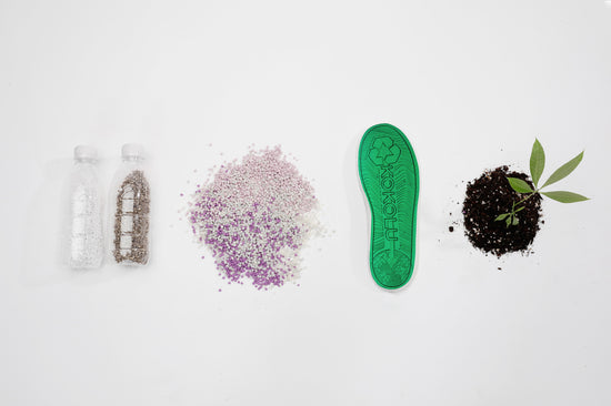 Since we work with one of the most innovative manufacturing partners in the industry, our recycled PET Fiber is made out of recycled plastic using the most advanced 3D knitting techniques. Before being spun into extremely breathable and temperature-regulating spools of fiber, the recycled plastic is melted and extruded, saving 3m^3 of landfill space. By recycling and reusing 1 ton of plastic bottles, we are able to reduce our oil consumption by 6 tons and reduce our dioxide emission by 3.2 tons!