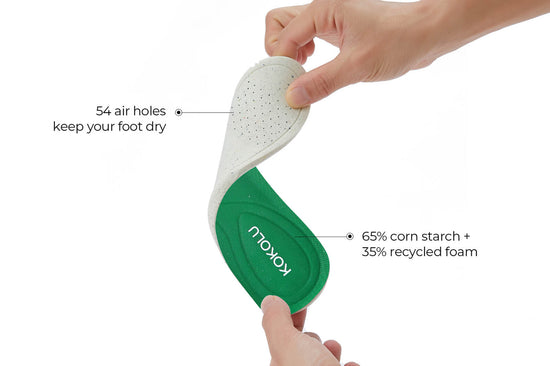 Our deep heel cup design and all-day arch support insole – made from cornstarch and recycled foam – super breathable and comfy so you won’t have to worry when wearing them. With temperature regulating air holes, the insole is antimicrobial, absorbs moisture and helps control odor, making our shoes perfect for all day wear!