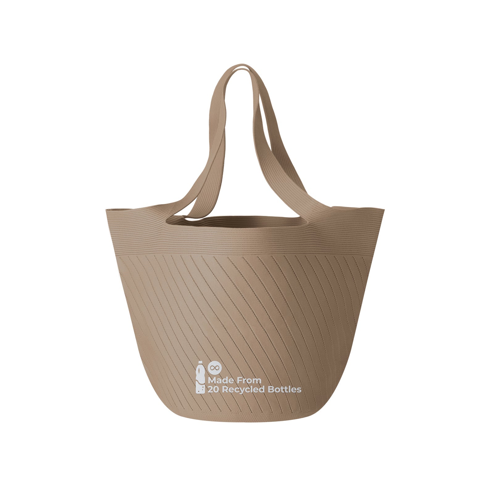 Using the most advanced technology in 3D knitting, each Daily Plus Tote Bag is made with 20 recycled plastic bottles and a mixture of other natural materials.