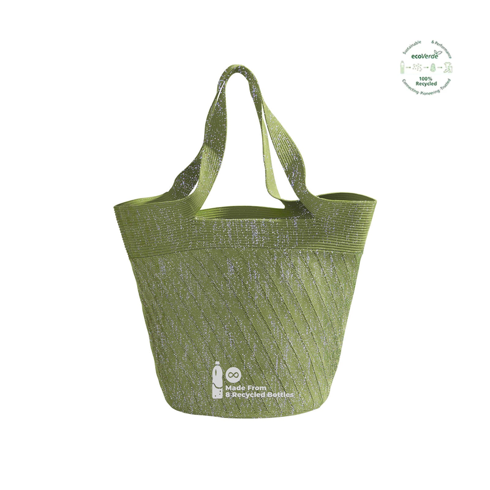 Using the most advanced technology in 3D knitting, each Daily Eight Tote Bag is made with 8 recycled plastic bottles and a mixture of other natural materials.