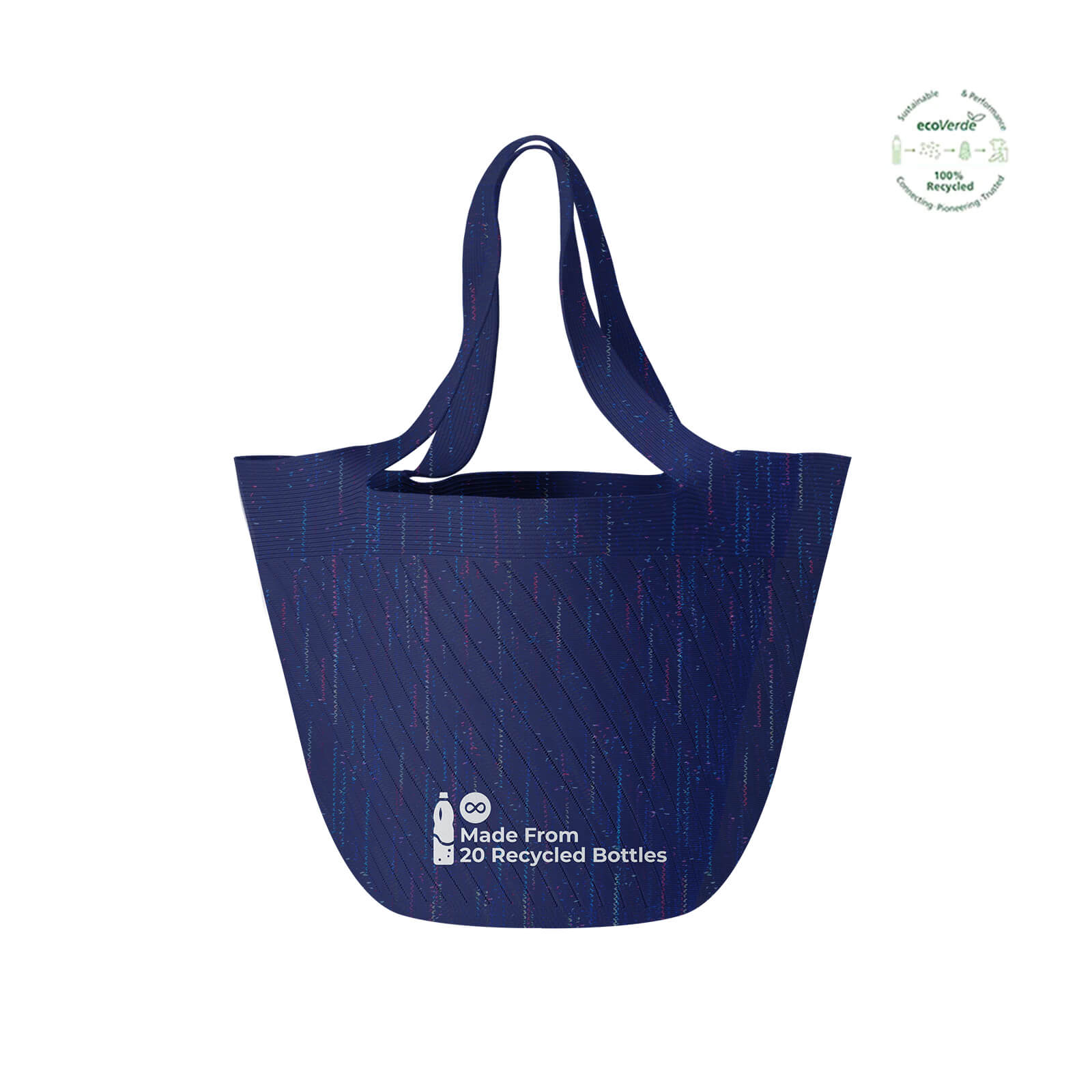 Using the most advanced technology in 3D knitting, each Daily Plus Tote Bag is made with 20 recycled plastic bottles and a mixture of other natural materials.